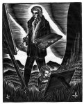 (3) The artist falls in love with the mistress, whom he is using as a model, but she reveals wordlessly that she only wants him for his money. Distraught, he leaves and wanders the city canyonlands, seeing everybody he meets as the auctioneer and the Mistress. He attempts to strangle the hallucination in rage, but is beaten by a cop and impounded. The auctioneer takes the remainder of his work and money back. At the last minute, the Artist uses that spiffy tie to strangle a prison guard bringing him food and escape. He now runs from a mob into the hills far from the city, and collapses in a haystack.