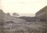 Above is a painting of the Chautauqua tents that Royal Rosamond wrote about in his Out West article ‘Camping On Anacapa’. Rena Christiansen and I were carrying on a family tradition. Above is photo of Mary outside her tent pitched on Santa Cruz Island, that lie next to Anacapa.