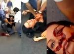 In the second video, the cameraman approaches her and the two men; the camera passes over them and centers on her face; her stare is blank and she is bleeding profusely from her nose and mouth. Loud screaming can be heard.[42]