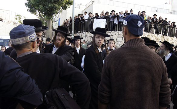 On Monday, one police officer was slightly hurt and a number of Orthodox Jews were detained after a group of some 300 ultra-Orthodox residents pelted police with stones and eggs in an incident reportedly triggered after police tried to remove a sign ordering segregation.
