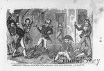 The gigantic form of John Coffee strode through the smoke, firing over the heads of Sitler and Jackson at Thomas Benton. He missed but came on with clubbed pistol. Benton’s guns were empty. He fell backward down a flight of stairs. Young Stockley Hays, of Burr expedition memory, sprang at Jesse Benton with a sword cane and would have run him through had the blade not broken on a button. Jesse had a loaded pistol left. As Hays closed in with a dirk knife, Benton thrust the muzzle against his body, but the charge failed to explode.