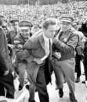 The 1964 Free Speech Movement at UC Berkeley, which staged the nation’s first major campus sit-ins of the ’60s, was being used in a Soviet plot against America. Hoover implied that the Communist Party USA was manipulating Mario Savio, the Berkeley student who’d become famous for leading the FSM. “Communist Party leaders feel that based on what happened on the campus at the University of California at Berkeley, they can exploit similar student demonstrations to their own benefit in the future,” Hoover testified on March 4, 1965.