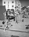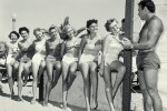 Marilyn went to Europe with the son of famous movie director on a ocean liner after we broke up. She lived in Paris France with her sister. For two summers Marilyn and I would go to Santa Monica Beach and rent rafts which we rode the waves to shore on. At fifteen and sixteen, her long beautiful blonde hair was like a banner on the beach, but, she was not one of them. We talked about the surfer cult at University High School. Surfers bleached their hair a white-blonde, drove Volks Wagons, and wore German Iron Crosses. I took note of these Aryans when I moved from Oakland. At a rally, my schoolmates rose, held out their arm and gave a V for Victory sign – to our school song which was similar to the German National Anthem. Today, the are surfer Wolf gangs Surf Nazis who defend their territory – the Fatherland of the Water Nymphs – who gathered on shore wearing the latest Bikini from France. Take, take, take!