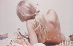 Now, I am four generation Oakland, and I never dreamed I would hear such words. LIFE magazine had done a pictorial on ‘California Girl’s’ obviously shot on the beach in Southern California. This blonde is emerging from the sea, dripping wet, splashing in the foam. She is a beautiful Nereide. I just found the photos for this article. I suspect Rena’s sister is amongst the group of waders, or, perhaps she is the woman lying on her side with her back to us.