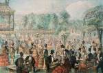 Pleasure gardens were – for the most part – built on the borders of London in the 17th/18th century (Marylebone and Islington were popular areas) to provide a range of outdoor amusements. The astonishingly long-lived Vauxhall Gardens (1661-1859) is the most famous – but it had a rival in Cremorne Gardens (1836-77) across the river in Chelsea.