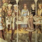 Cristoforo and Franceschino Zavattari are known as collaborators to the decoration of the Duomo of Milan in the early 15th century. The family’s masterwork are the frescoes in the Theodelinda Chapel in Cathedral of Monza, work by Ambrogio and Gregorio Zavattari (1444). Unusually in fresco, the gold sky is patterned in relief pastiglia plasterwork.