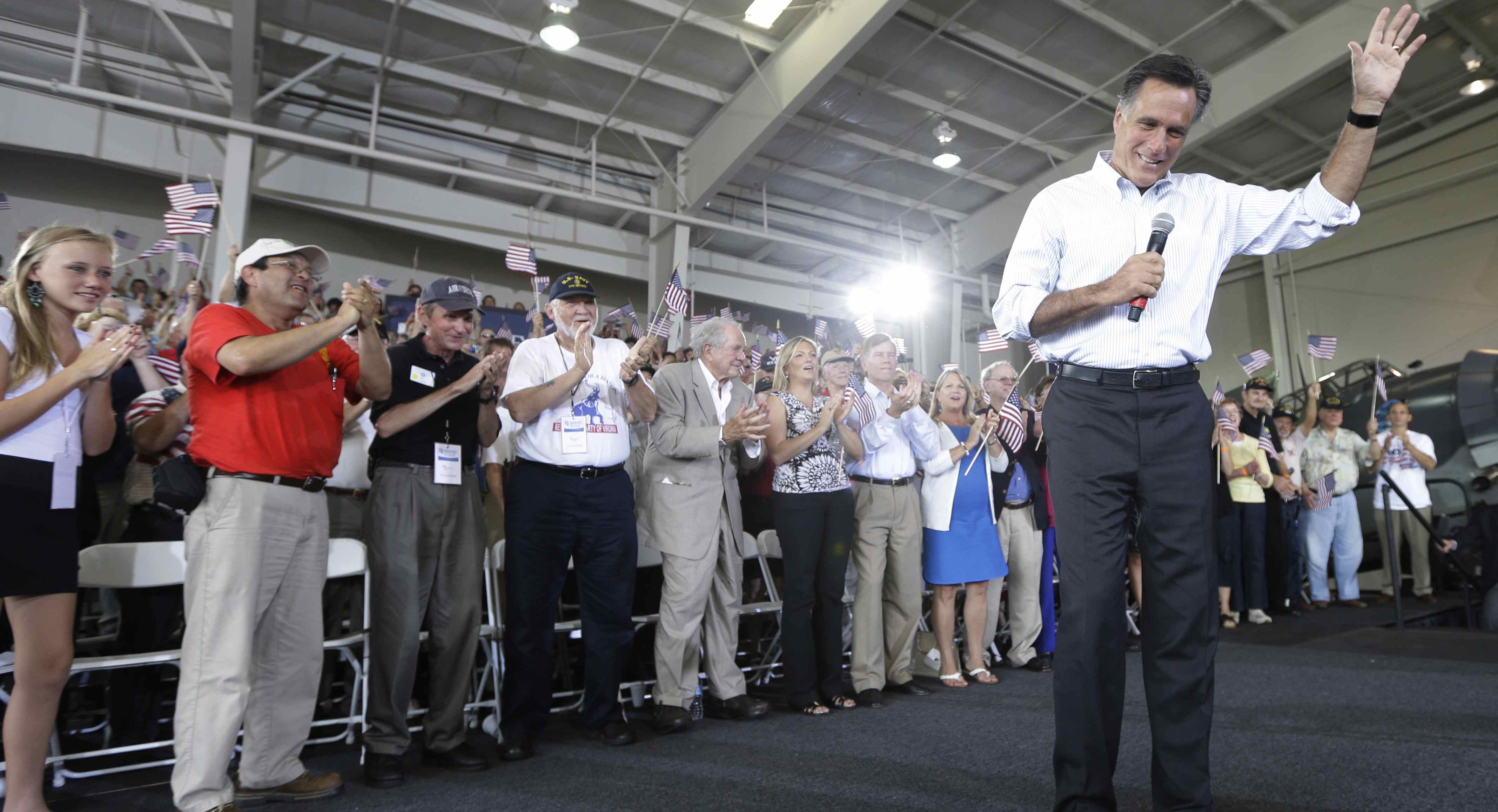 “That pledge says ‘under God,’ and I will not take God out of our platform,” Romney said at the rally, heavily attended by military veterans. “I will not take God off our coins, and I will not take God out of my heart.”