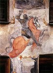 The pictures, however, depict only a legend and are not very accurate. The castles painted there were actually founded much later in the 13th century, for example Stráž, around 1276. The other inaccuracy is that the Krumlov Witigonen was split in the next generation into two separate clans. They were already separated by Witigo\’s sons Vítek II referred to as the elder, who started the Krumlov Witigonen, and his younger brother, also called Vítek, who started the Rosenberg Witigonen. The third mistake is heraldic. The Krumlov Witigonen had a green rose in their coat of arms, not a red one, as the picture shows. The historical truth is, that Witigo had five sons :