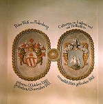Historically, roses represent the presence of our founder and patron, Wilhelm von Rosenberg, whose family name means literally “mountain of roses.” The rose carried deep personal meaning for him. The five-petaled red rose figures prominently in his personal coat of arms (shown at left), and the rose symbol is present in many other forms at all of his family estates.