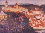 The Krumlov castle thus became the residence of the Lords of Rosenberg for the next three hundred years. Peter I. von Rosenberg held the post of the superior chamberlain at the court of John of Luxembourg. His wife was a widow of the Czech King Václav III. – Viola Těšínská. His oldest son Jindřich perished together with John of Luxembourg in the battle of Crecy in August of 1346. Another significant personage of the family was a son of Oldřich II. – Heinrich III.von Rosenberg who lead the Union of Nobility, which was displeased by the reign of King Václav IV. The Union of Nobility therefore imprisoned the king in 1396 at the castle in Český Krumlov. Heinrich’s son Ulrich II von Rosenberg belonged to the Czech members of the nobility who defended the interests of Czech Catholic nobility and of Sigismund of Luxembourg during the stirring times of the Hussite wars. A daughter of Ulrich II was Perchta von Rosenberg who is identified with the Rosenberg “White Lady” (see Tales of the White Lady). The renowned personage Peter IV. von Rosenberg meant, for the Rosenberg dynasty, the development of economic activities (namely fishing and the mining of heavy metals), the beginnings of humanism and the Renaissance, and especially the affirmation of a significant position of the Rosenbergs among leading Bohemian families.