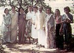 In May 1913, Merwan Sheriar Irani, then nineteen years old, was riding his bicycle on the way to class at Deccan College, when he looked up and saw an old woman sitting under a neem tree surrounded by a crowd. He had cycled past on previous occasions but had never paid much attention to her, though he was aware that she was regarded by some as a Muslim saint; yet others thought her “a mad woman or a witch or sorceress”.[20] His father, Sheriar Irani (Shahr-yar Moondegar Irani), held Babajan in high regard. Born into a Zoroastrian family, Sheriar Irani had been an itinerant dervish for a number of years[21] before finally settling in Pune and marrying. Babajan beckoned the boy, who in turn was drawn towards her. For several months thereafter Merwan Irani would visit the saint; they would sit together yet seldom spoke. One night during January 1914, he was about to leave, and before doing so kissed Babajan’s hands, and she in turn held his face in her hands. She then kissed him on the forehead,[22] during which he received her spiritual grace (barakah).[23] The event subsequently left Merwan Irani in an enraptured state in which he remained abstracted from his normal surroundings for nearly nine months.[24] The young man would later become known as Meher Baba.