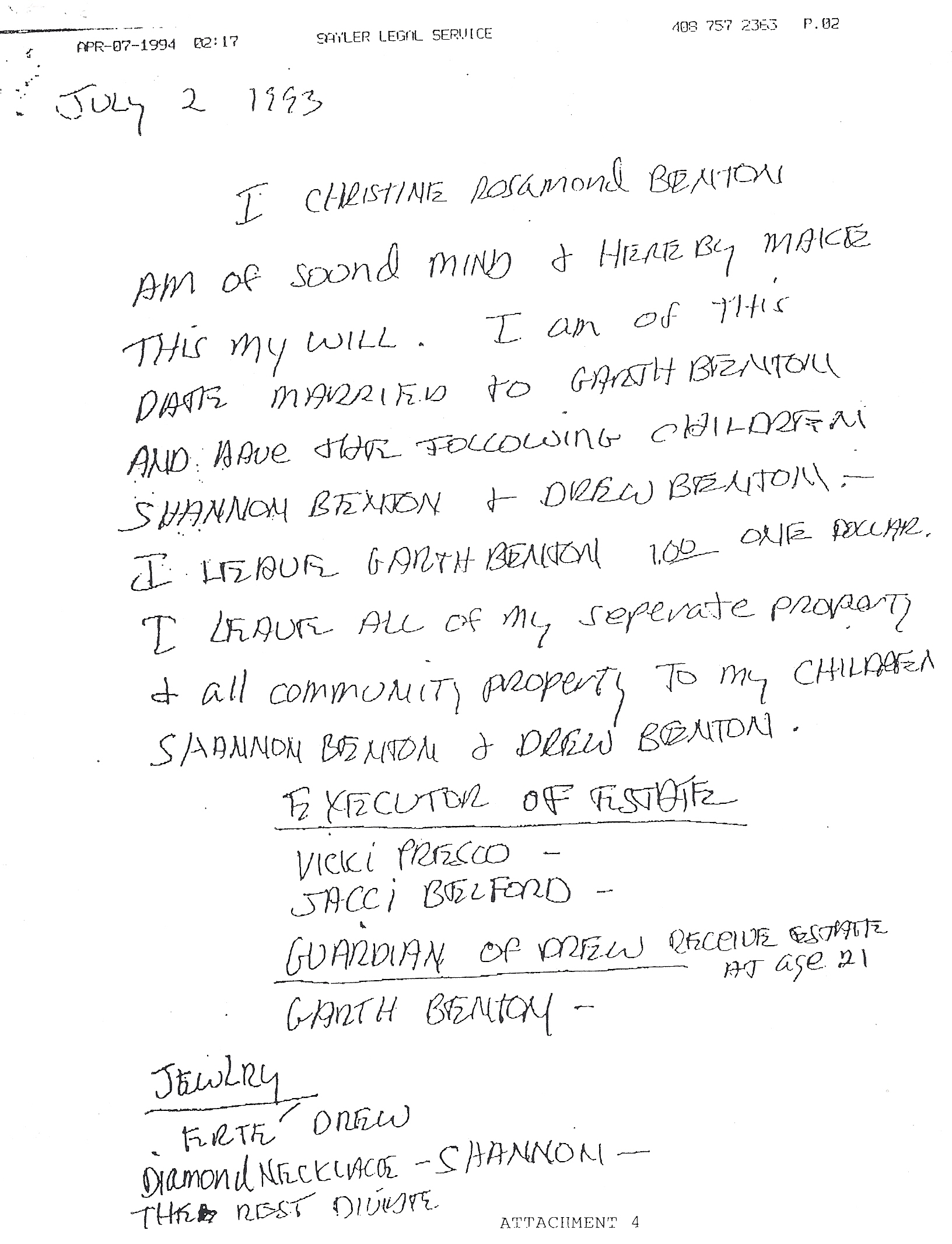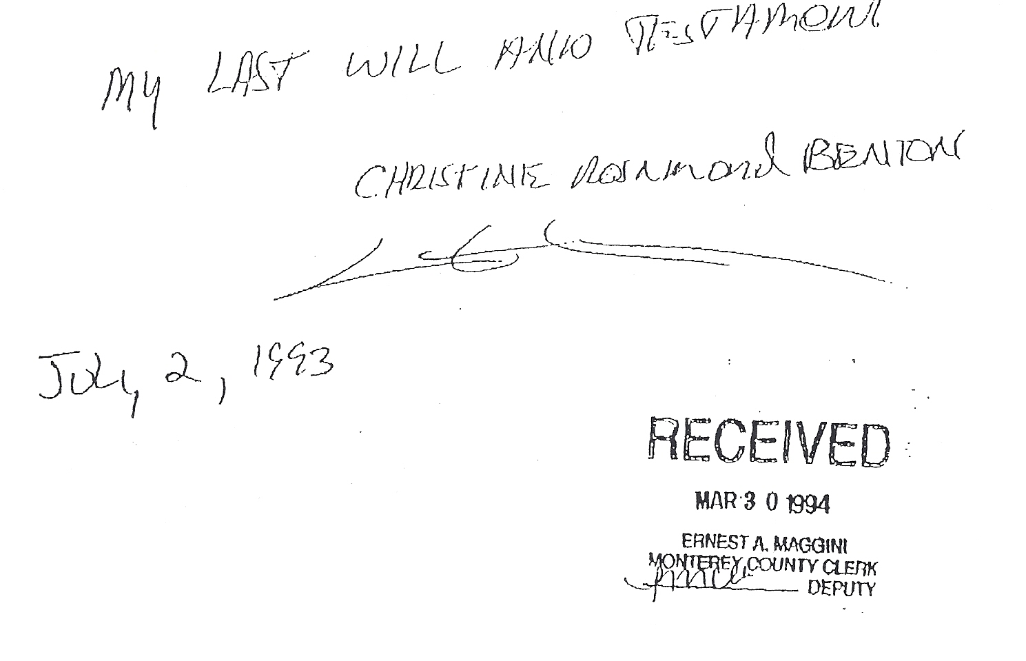 Above is Christine’s Will that gives Garth Benton a dollar so he would not claim he was left out – and go for it all!