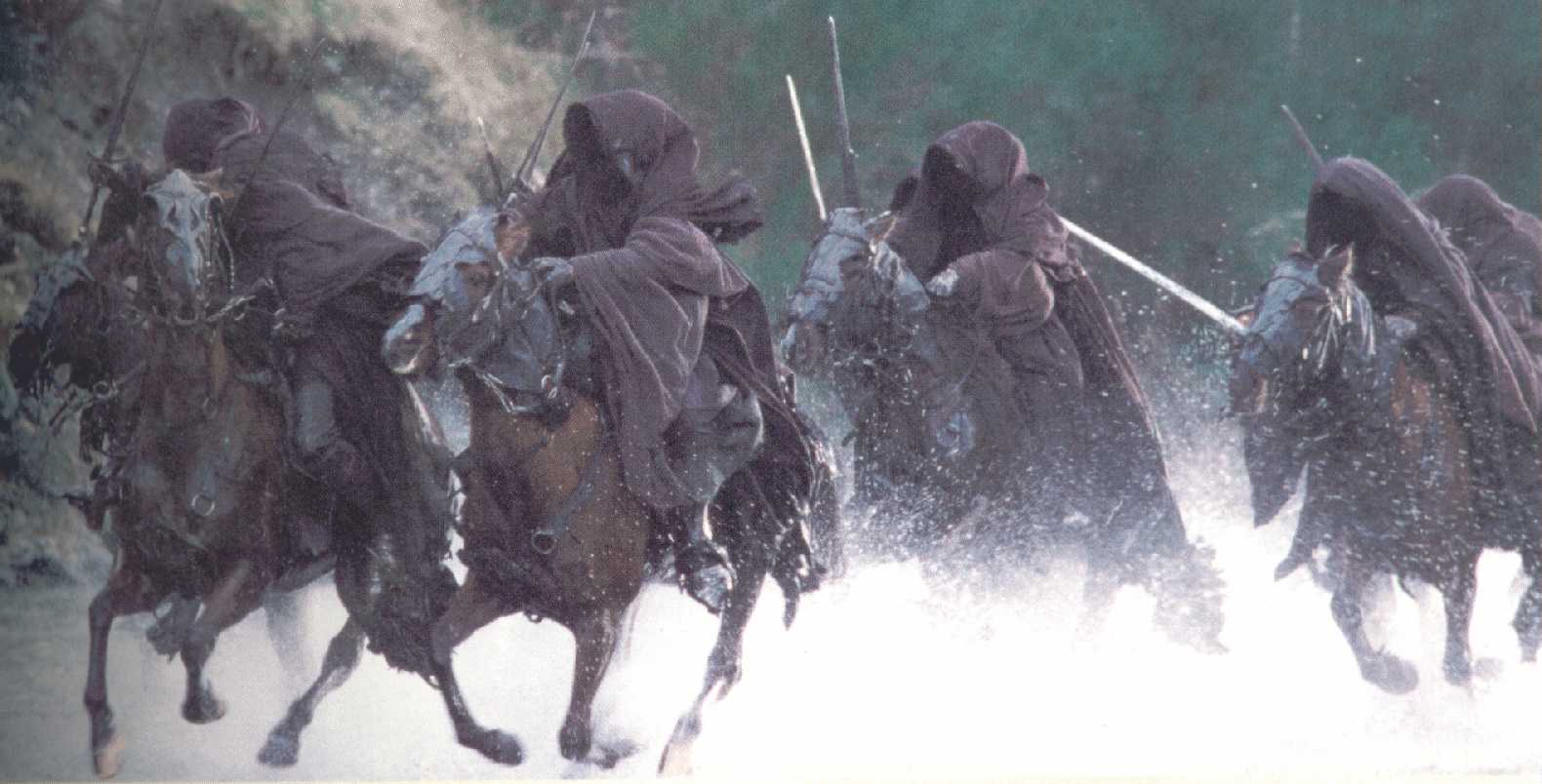 Later in the Second Age, Sauron gave the Nine to powerful men, “kings, sorcerers, and warriors of old”.[3] Only a few of the bearers of the nine rings are named or identified individually. Their leader was the Witch-king of Angmar, and his second in command was named Khamûl.[4] Khamûl was a lord of Easterlings and was the only one to be named. Three of the Nine were Númenórean.[5] All Nine fell swiftly under the rings’ domination. They became the Nazgûl or Ringwraiths: spirits of terror whom Sauron could command even without the One. Their lives were extended indefinitely by the rings, and they became Sauron’s chief servants, especially during the first part of the Third Age when he was too weak to act on his own behalf.