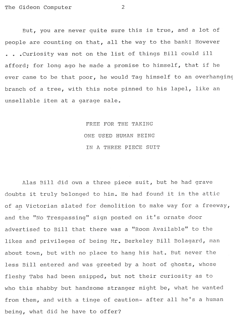 It was here I knew Hollis and I had crossed paths again for a noble puropus, for this is the novel that got me into Recovery when I realized I was seeing my future. The Gideon Computer is science fiction about the last hippie who finds Godhead in a computer.
