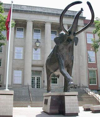 I just got off the phone with Wendy, a student at the University of Nebraska who works in the gift shop of museum in Morrill Hall which I had googled. I asked Wendy how long the life-size statue off the mammoth had been in front of the museum.