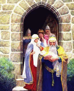 Above is a painting of Merlin coming for King Arthur – when he was three weeks old. Merlin was name Ambrosius as a boy. I suspect he was a foundling that are given the name PARISH if left at a church. BARISH and BRASCH may be the root of Ambrosius. With my discovery of the Norse Grail, I take back all that has been taken from me by a den of thieves and liars!