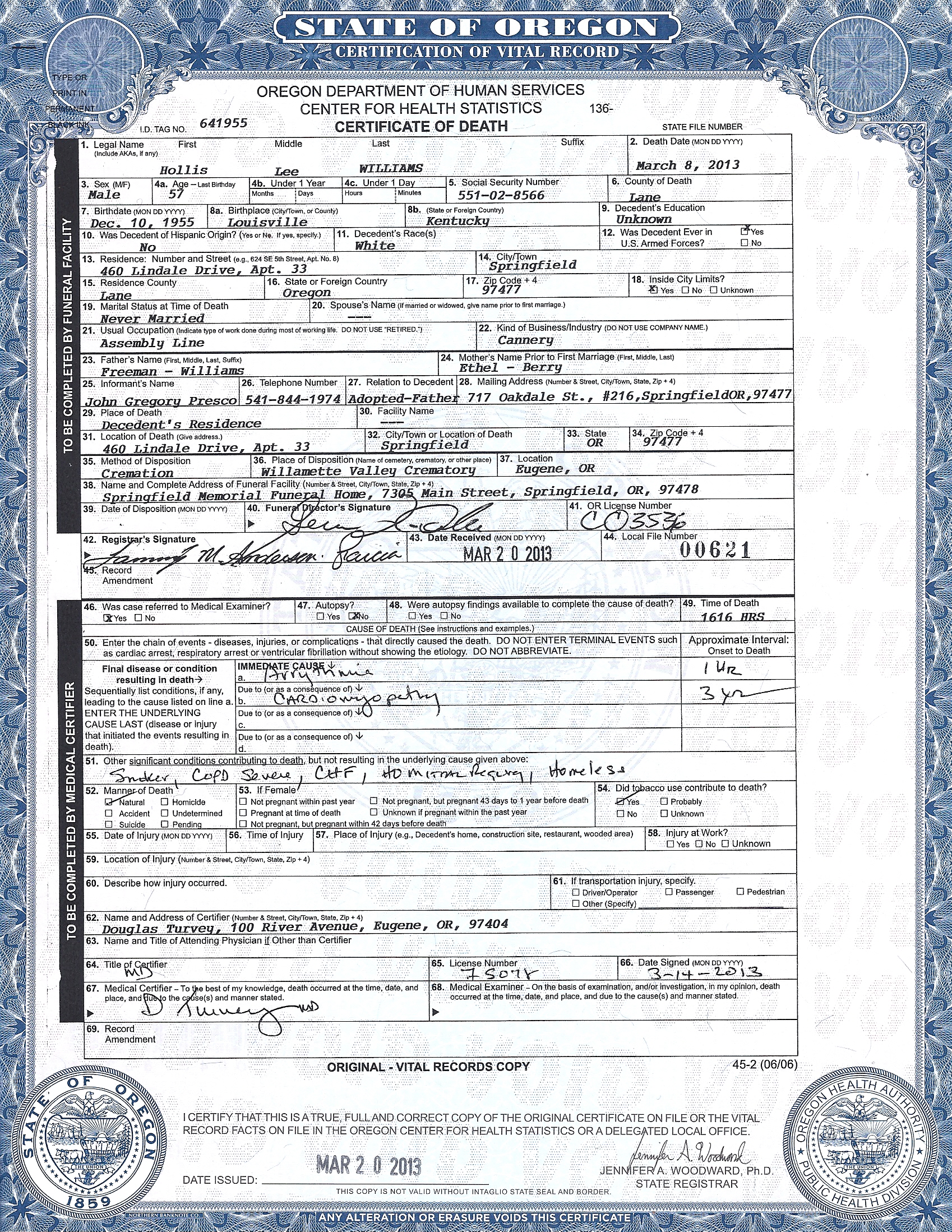 I alone uncovered our lost history. This history now belongs to Hollis Lee Williams. He is the son June and Vincent Rice always wanted. He was the least amongst us. Now he is the first. Hollis was a kind and graceful man. He was generous. He shared his food almost every day he was homeless.