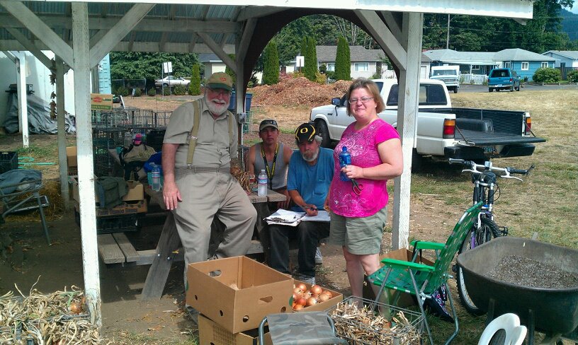 Above are photos of Hollis and I volunteering at the Youth Farm For Food For Lane County. We drove past the vegetable stand in front of Riverbend Hospital. We prepared boxes of onions that day that will go to feed hungry homeless people.