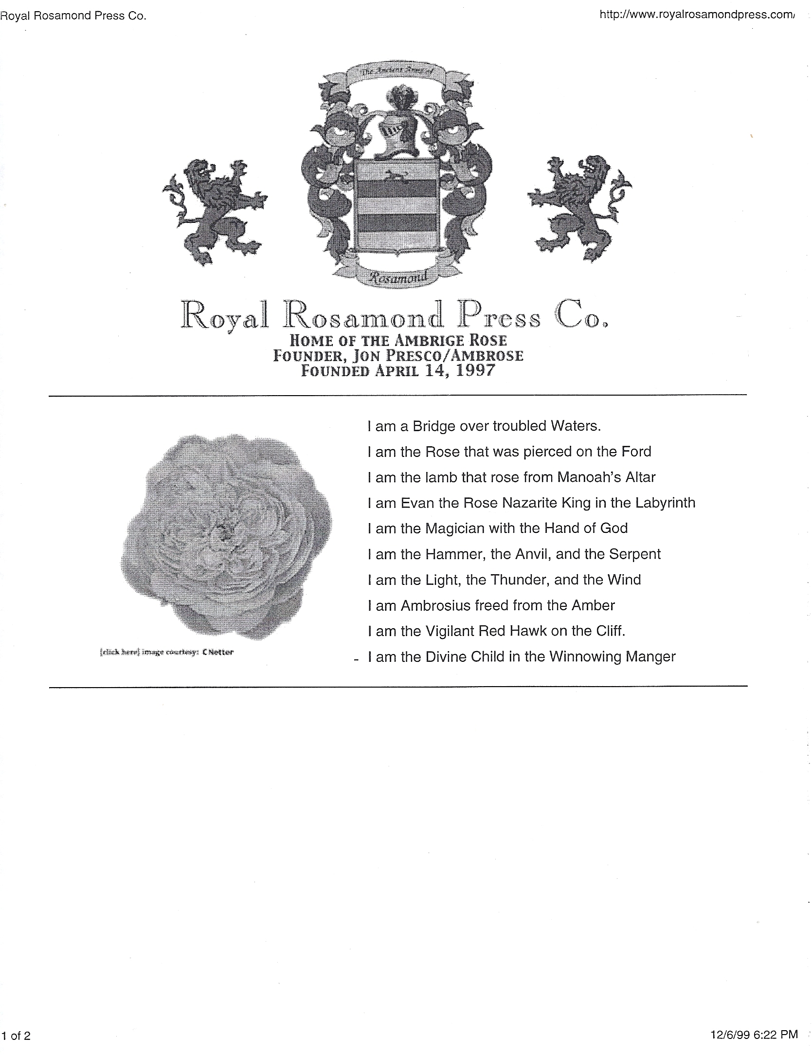 As fate would have it, Ambrose is the meaning Braskewitz, and thus the boy resting in the wings of angels in my cote of arms. Here you will find the Ambridge Rose, the first chapter of my essay first published by Royal Rosamond Press in 1997. Coincidence?