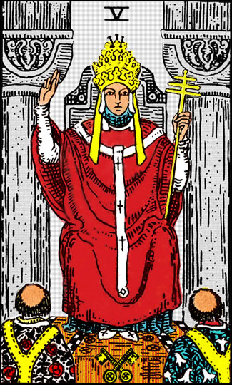The Hierophant is known as the High Priest in some decks. He is the masculine counterpart to the High Priestess. He is also known as Chiron, the Pope and the Shaman. The Hierophant is ruled by Taurus.