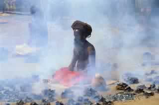 After a long pause, as he took her in, he pointed to his potato, and then over to our fire. He now made little shoving motions with his precious spud.