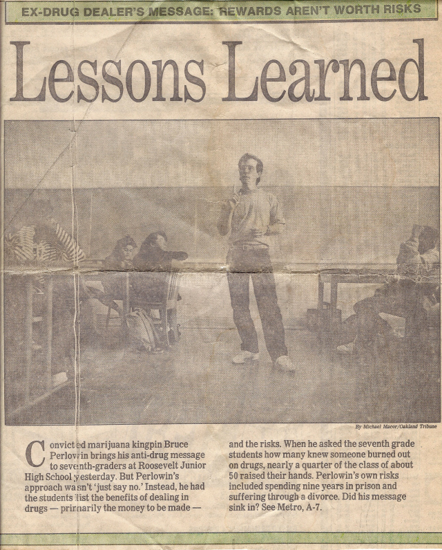 Bruce said the rewards arent worth the risk to Junior High school kids in Oakland’s Ghetto, where Bruce had gone at my suggestion, I trying to do a 12th. Step. I challenged Bruce to give a anti-drug-profit message. Bruce saw a chance to garnish some publicity. I was angry, and called the Tribune reproter who wrote the article. Turns out he had eleven years sobriety, and, he felt guilty for getting Bruce busted because of an article he wrote that he was not aware would crack open the case that put Bruce in the Fed lockup.