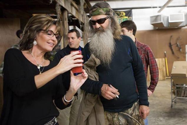 Sarah Palin and Duck Dynasty star Phil Robertson meet up at a book signing in Monroe, Louisiana, in December.