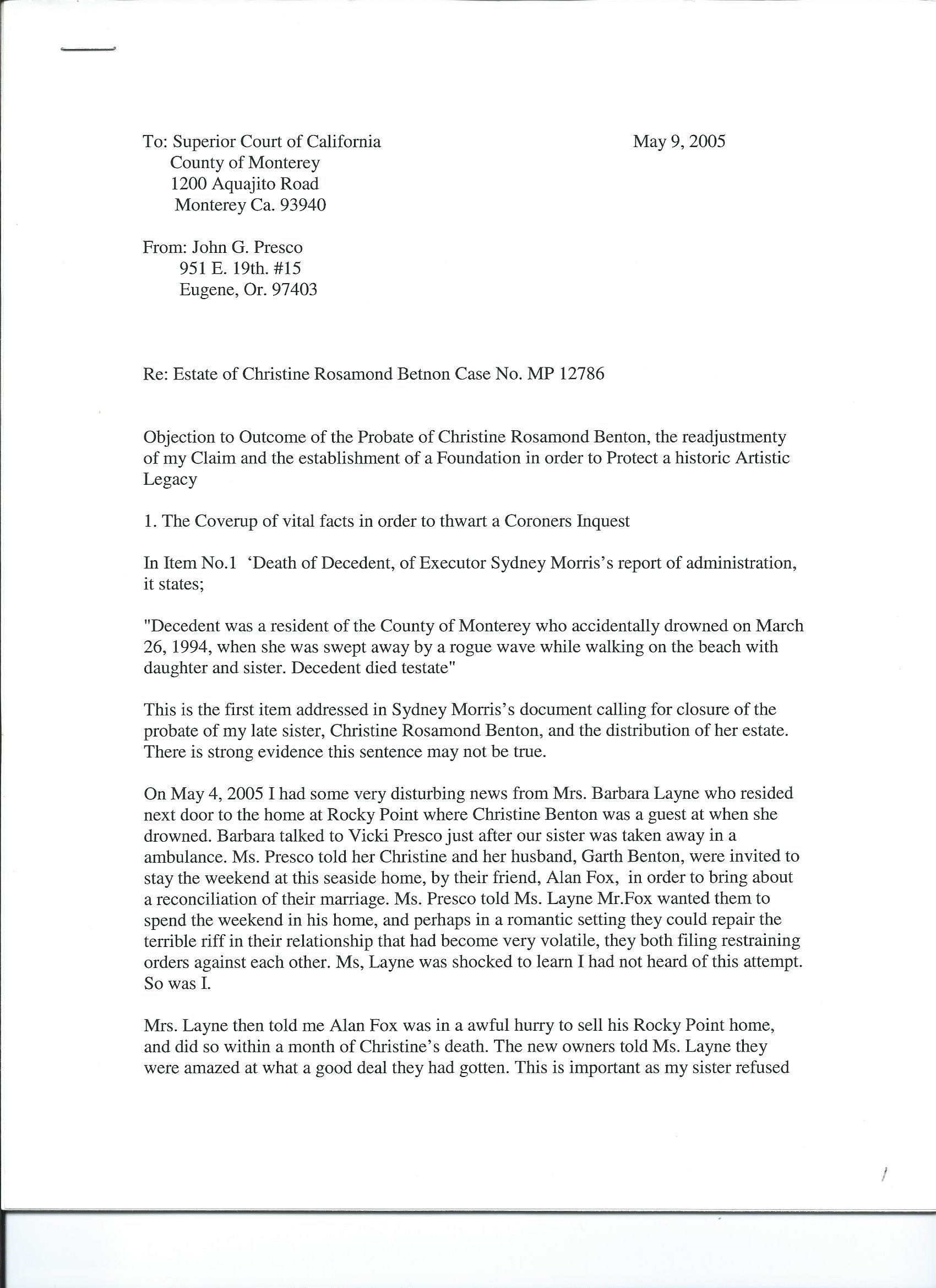 When I was in Sacramento, I looked into partnerships at the California Chamber of Commerce. Christine had formed seven legal partnerships. How many did Garth form? Ten years before Christine died, folks went to jail for using art lithographs as tax write-offs. They would print a shit load of them, give them a value, and when they didn’t sell, use them as a tax write off. Christine and Garth had sixty million dollars worth of prints in their garage. If I was Christine’s partner, and I learned she was in trouble with the IRS, I would want to have a very private chat with her. How about you?
