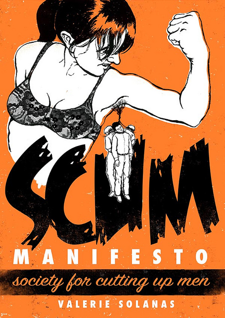 The SCUM Manifesto is a radical feminist manifesto[1][2] written in 1967[3][4] by Valerie Solanas. It argues that men have ruined the world and that women should overthrow society and eliminate the male sex.[5][6] “SCUM” stands for “Society For Cutting Up Men” according to Sharon L. Jansen,[7] but whether it was an acronym has been disputed.
