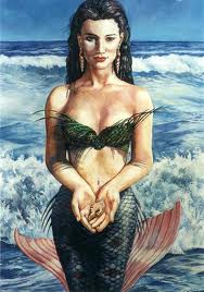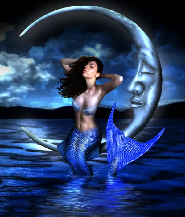 Rena feared the sea because she is a land-locked mermaid. She is the muse of a brother and sister who died at the edge of the sea. The painting I did of her in 1971 put her in a sea a summer grass. A crescent moon crowned her. Her blue mantles was full of stars.