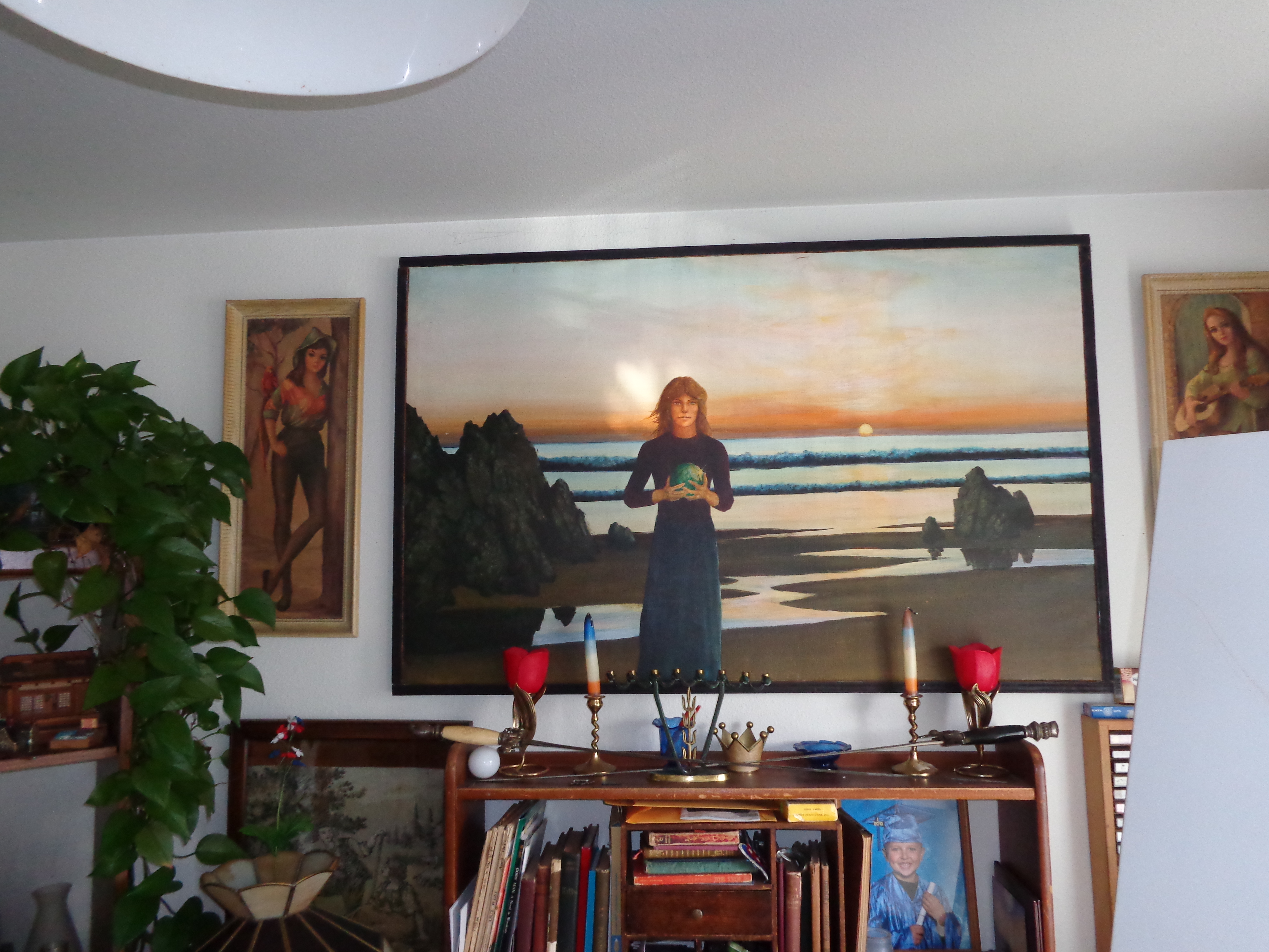 I lay down to take a nap about 3:00 P.M. when I saw a halo around the head of my angel I painted in 1976.