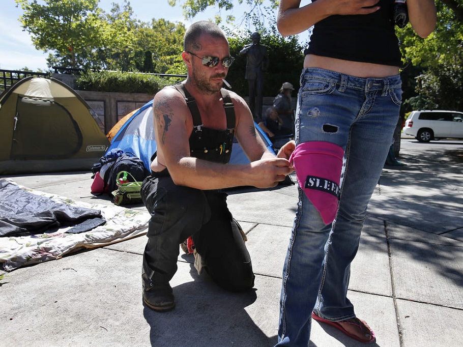 Homeless or ‘un-housed’ camps can be seen throughout Eugene.