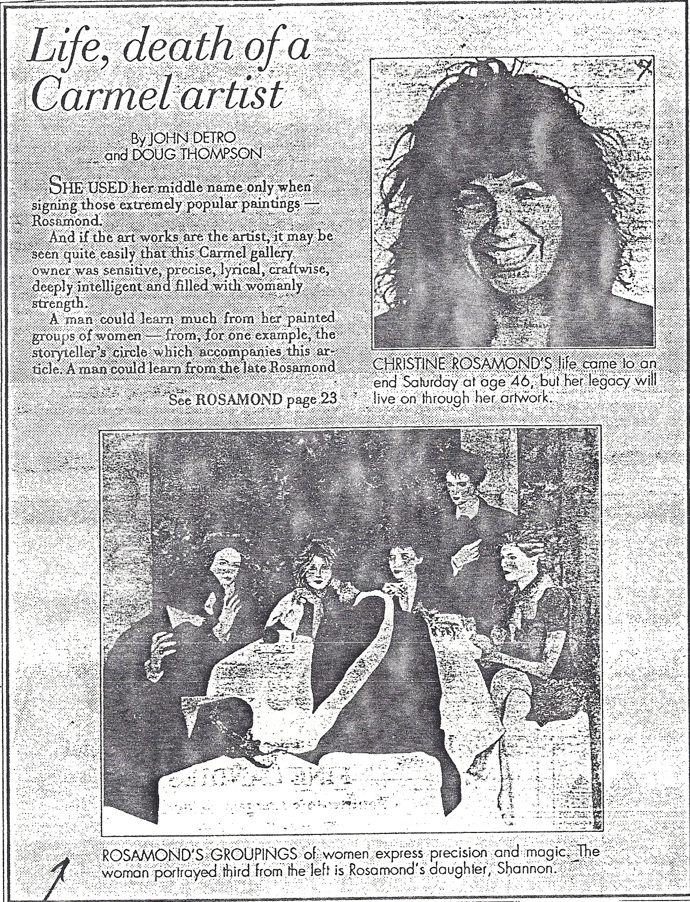 The attempt to take over Rosamond’s Artistic Legacy, is legend. Belle Burch got goose-bumps trying. She became afraid when I caught her so easily, and, she felt a force that may have laid her ex-boyfriend, low. To title me insane for protecting my family and our creative legacy, is insane.