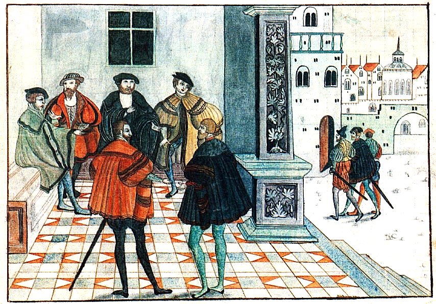 First Treaty of Brömsebro: Christian III’s meeting with Gustav I of Sweden in Brömsebro, 1541 (watercolor reproduction of a lost painting made during the Swedish King’s reign)
