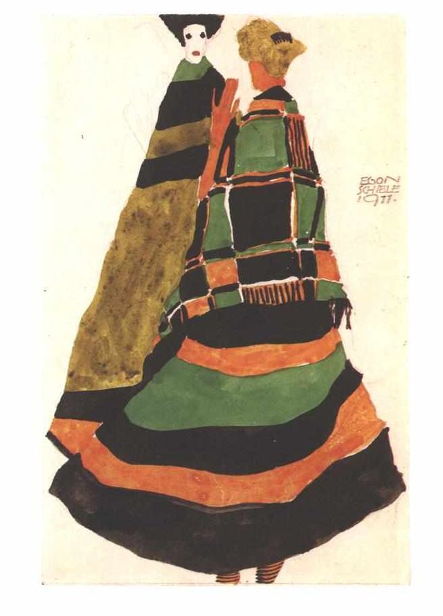 In 1911, Schiele met the seventeen-year-old Walburga (Wally) Neuzil, who lived with him in Vienna and served as a model for some of his most striking paintings. Very little is known of her, except that she had previously modelled for Gustav Klimt and might have been one of his mistresses. Schiele and Wally wanted to escape what they perceived as the claustrophobic Viennese milieu, and went to the small town of Český Krumlov (Krumau) in southern Bohemia. Krumau was the birthplace of Schiele’s mother; today it is the site of a museum dedicated to Schiele. Despite Schiele’s family connections in Krumau, he and his lover were driven out of the town by the residents, who strongly disapproved of their lifestyle, including his alleged employment of the town’s teenage girls as models.