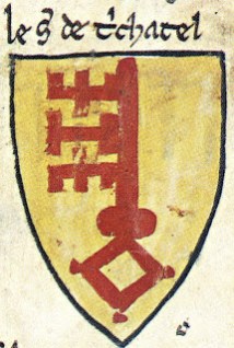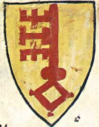 –– 1297 – distance of Triechastel bears the Golden weapons [Chief / a key] of gheules, Armorial Chifflet-Prinet 93 or 94