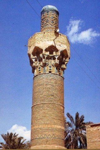 The Imam Yahya Abul Qasim Mosque in Mosul is an Umayyad Mosque that was built by the architect Utba bin Farqad Al-Salami around 640 AD with remarkably elaborate brickwork and a height of 52 meters. Image credit – Iraqi Ministry of Tourism and Antiquities.
