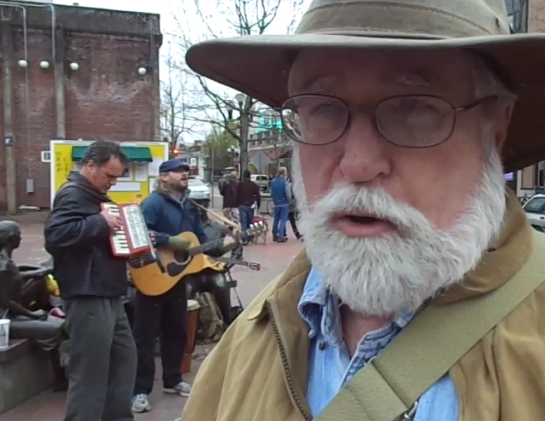 When I told Belle how the Bohemian outdoor café scene got started, being, every time Bohemia was OCCUPIED by a forging army, and after a curfew was imposed, they put their tables out on the street and ate there in defiance. Here was one of the many opportunities Belle had to tell me about her and Ambrose’s work as Advocates for the Homeless. Why is she mum, especially after seeing me dressed in a Santa Suit at the second OCCUPY meeting, and at the OCCUPY camp at the Saturday Market site? She could have said;