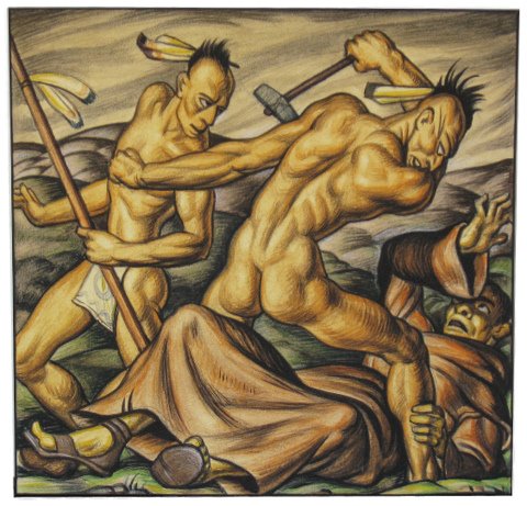 | Murals: (some of the significant ones) A large rock mural in the Laura Scudder home in La Habra, California, 1957. “Phantasmagoria of Military Intelligence Training“ A large serial mural 157′ long and 4′ high. Commissioned by the U.S. Army and later lost, 1945. “The Development of Power” and “The Development of Light“ Two large murals in the reception area of The United Illuminating Company, New Haven, Connecticut, Temporarily removed for reinstallation in new building, 1937. “Restoration After the Hurricane,” Mural in United Illuminating Plant, New Haven, Connecticut. Twelve (12) murals in the Governors Reception Room in Nashville, Tennessee. Post Office, St. Johnsville, New York,1938 . Other murals are in churches, hotels, post offices and residences.