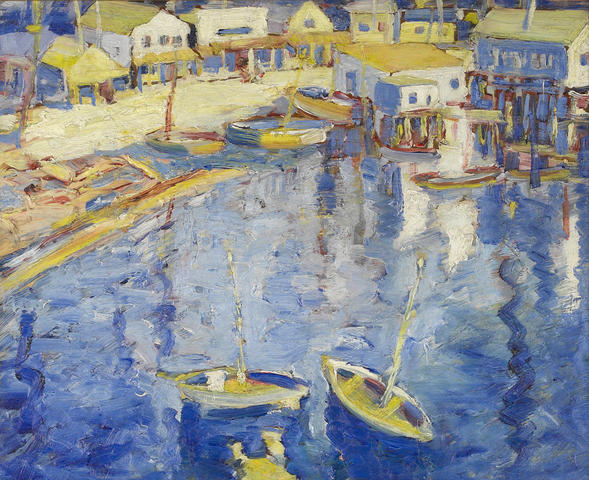 William Henry Clapp (1879-1924) was the last to join the group and had the most cosmopolitan background, including art training in Montreal and Paris and a six-month stay in New York City. Having lived in Oakland in his youth, he returned in 1917, settled in Piedmont, and began teaching life drawing at the California School of Arts and Crafts in Berkeley. He was appointed acting director of the nearly new Oakland Art Gallery in 1918 and served as its director from 1919 to 1952. In 1923 he organized the first of six annual Society of Six exhibitions at that venue. Although he brought exposure through the gallery to more radical styles of painting, his own work adhered to the features of American Impressionism.