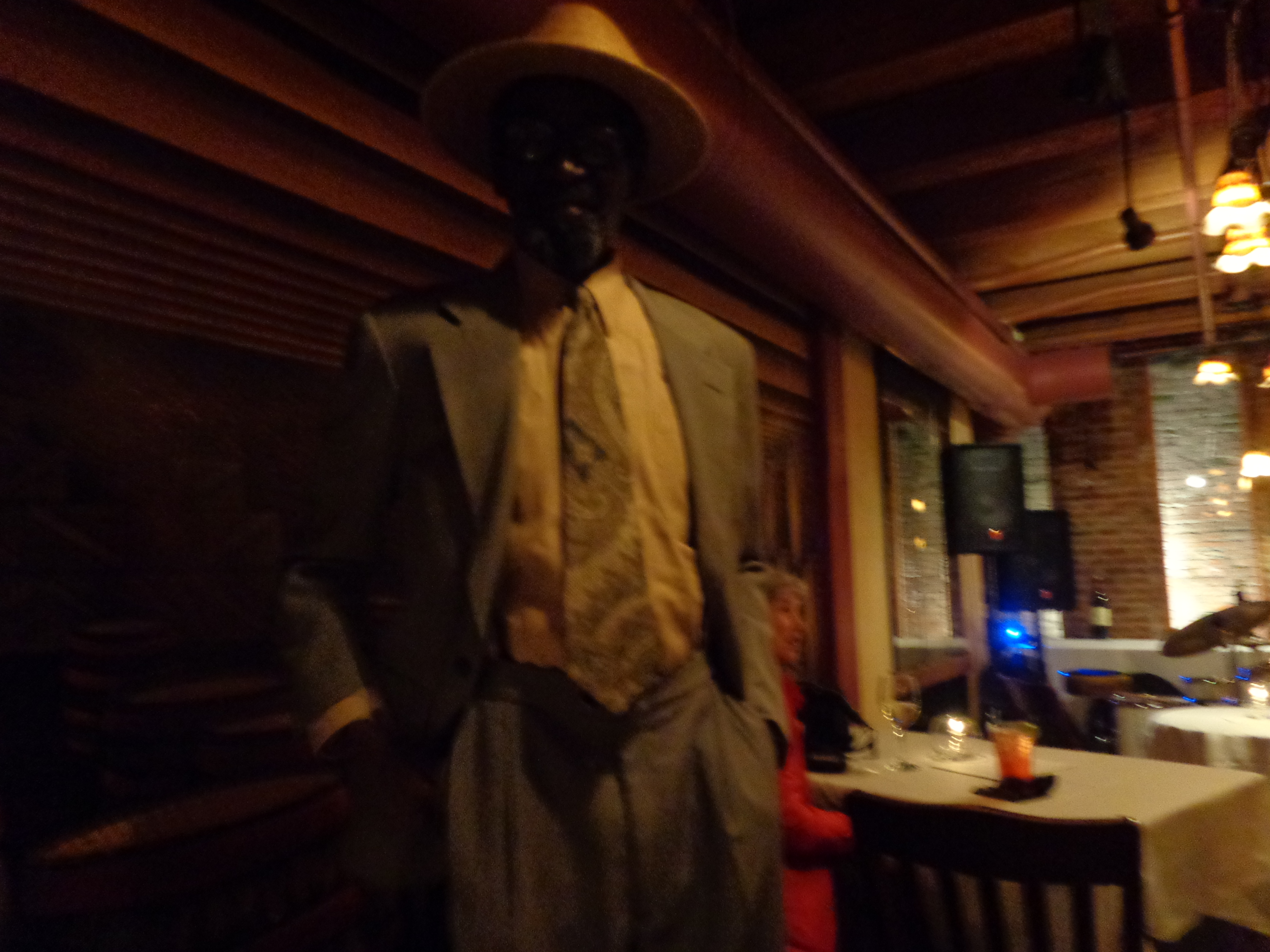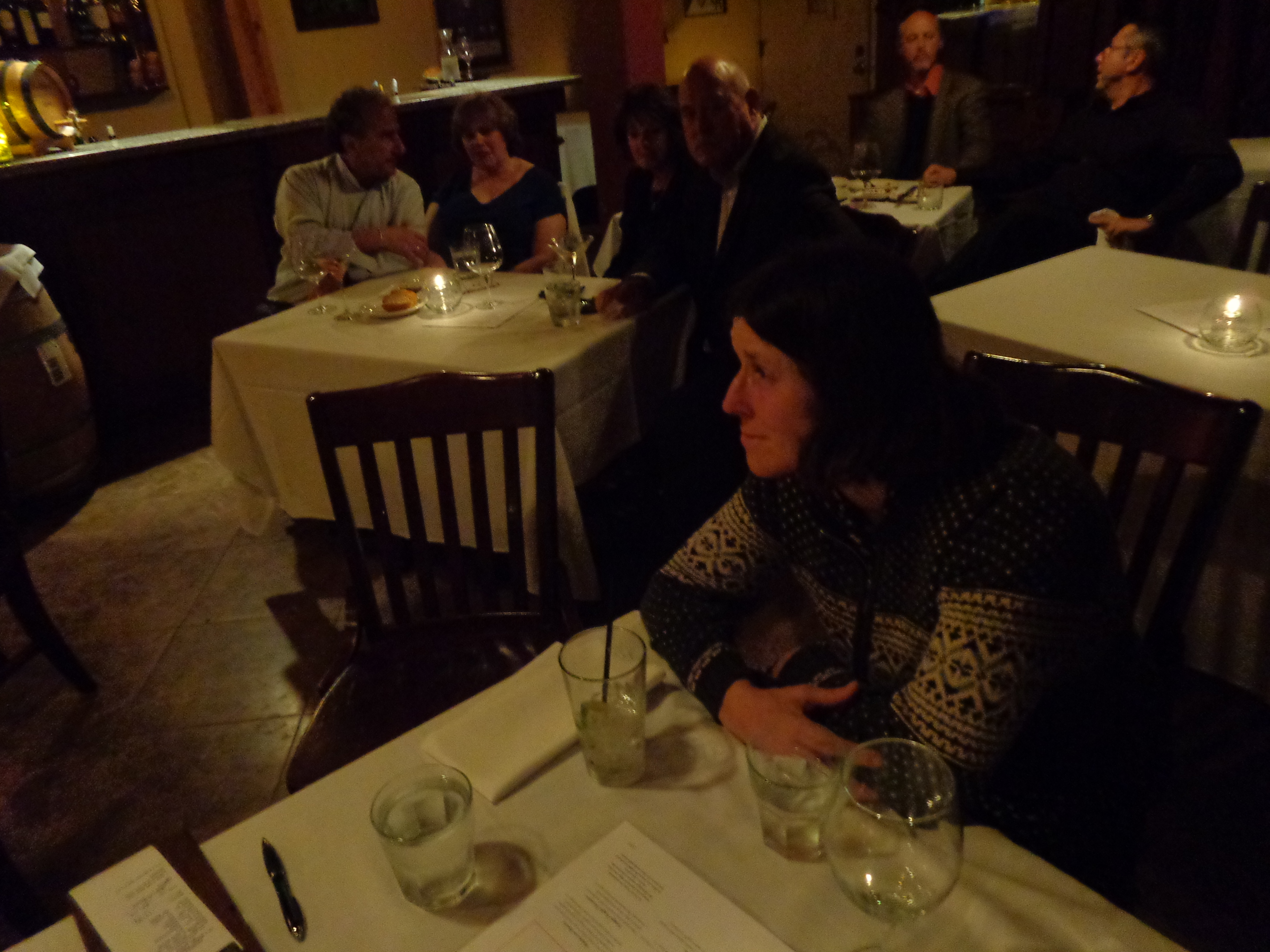 Going downstairs Virginia finds our table. There are faux wooden barrels and crates painted on the wall. I am home with my Benton kindred. There is a painted burning candle next to a bottle of wine. Over Virginia’s head hangs a bare lightbulb. My friends recognizes someone at the next table, but has forgotten his name. She has forgotten our waitress. Then, Kenny Reed is standing over us extending his hand. He looks dapper in his suit.