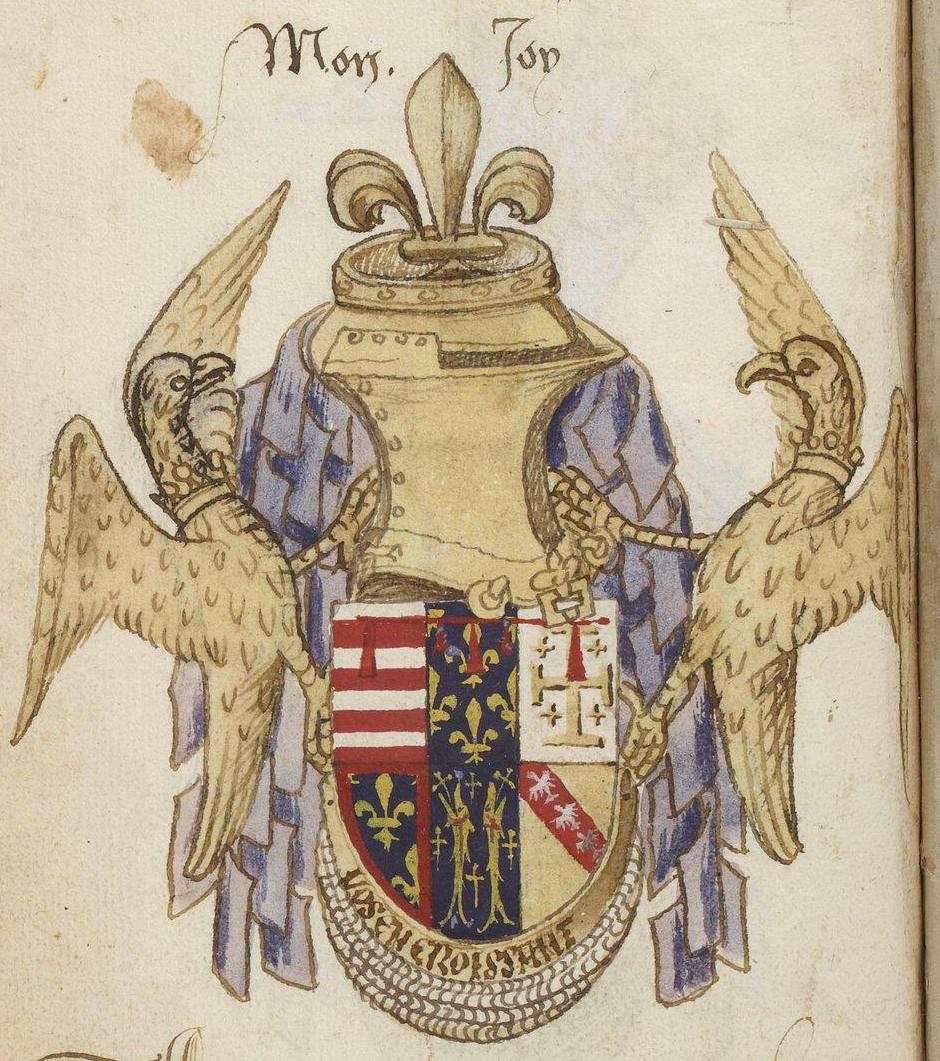 I believe I have found Virginia Hambley de Bourmont’s illustrious ancestor, Bertrand de Beauvau, who was a Senator of the The Ordre du Croissant, that later became The Ordre of the Star. In Louis de Bourmont’s cote of arms we see a crescent moon and star, with the de Bar fish that are in Rene de Anjou’s cote of arms who founded these orders.