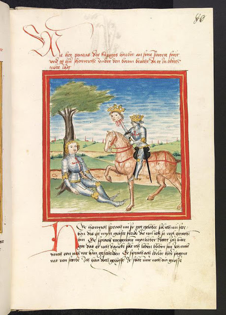 The remainder of the manuscript (from folio 293 onwards) contains texts which are more didactic in nature, perhaps intended for the instruction of Margaret of Anjou or of her future sons and heirs. There are three works on chivalry and warfare, an instructional manual for kings and princes, a chronicle and statutes.