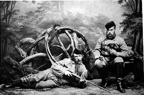 “George Armstrong Custer and Grand Duke Alexis of Russia pose at the start of an elaborate buffalo hunt arranged for the royal visitor by General Philip Sheridan. “Buffalo Bill” Cody served as scout on this 1870’s adventure and recounts the experience in his autobiography.”
