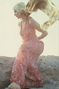 When Marilyn told me her portfolia got burned up in a fire, I grieved, for she told me within were photographs of her friend, Maggie Thrett. She is posing in the dresses and outfits M made for this actress who was in ‘Mudd’s Women’ a Star Trek eposode.