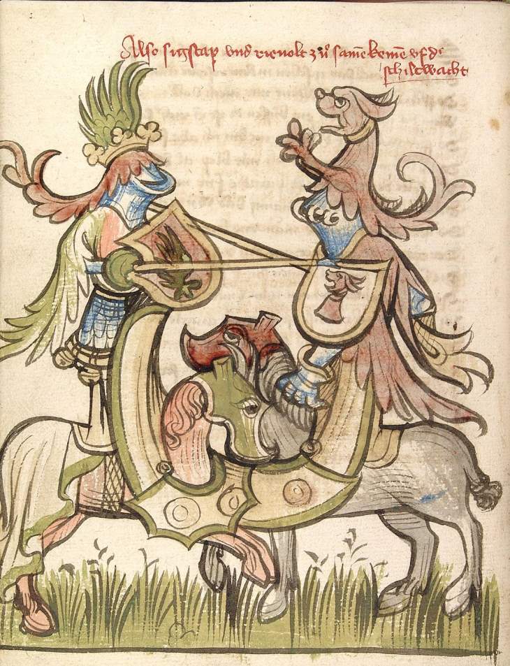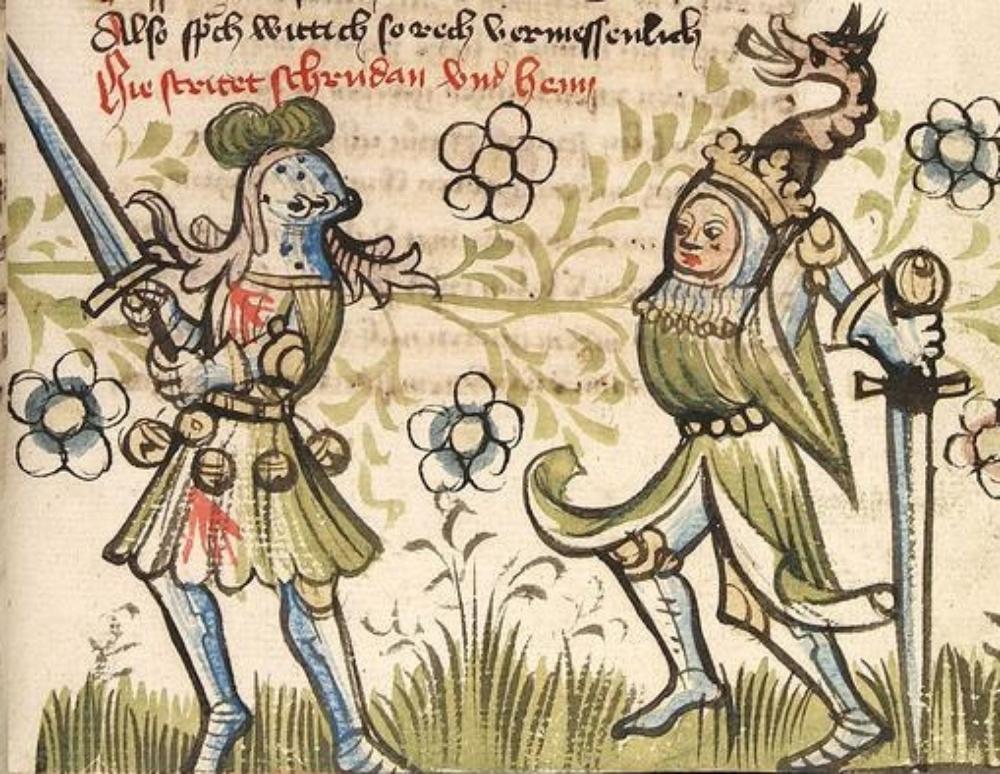 Dietrich and Walberan challenged each other to single combat, and they fought with great fierceness. Numerous were their wounds, nor could one prevail over the other. It seemed as if they would both be slain.
