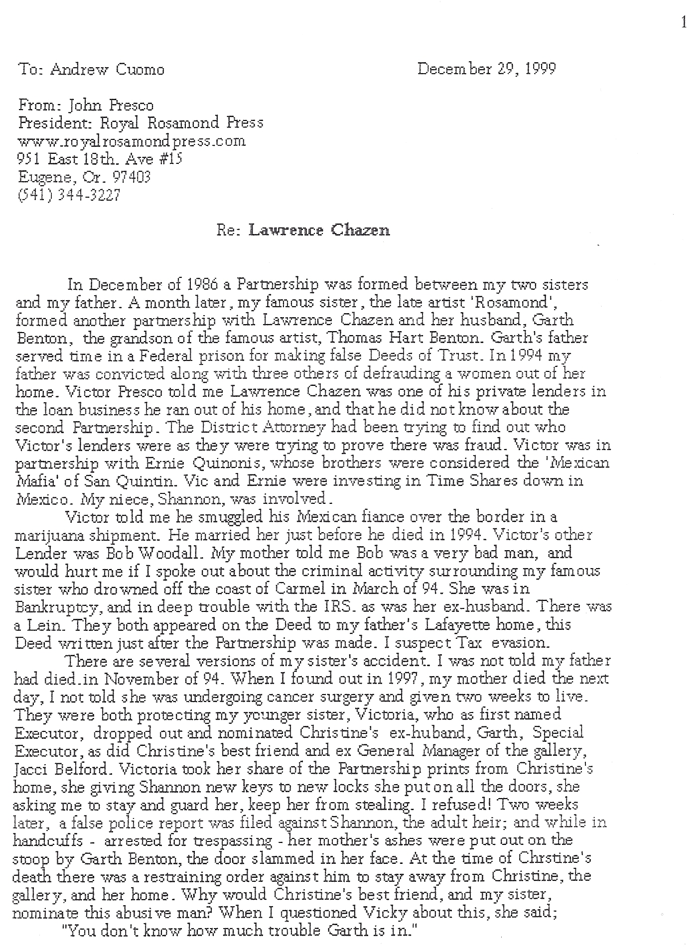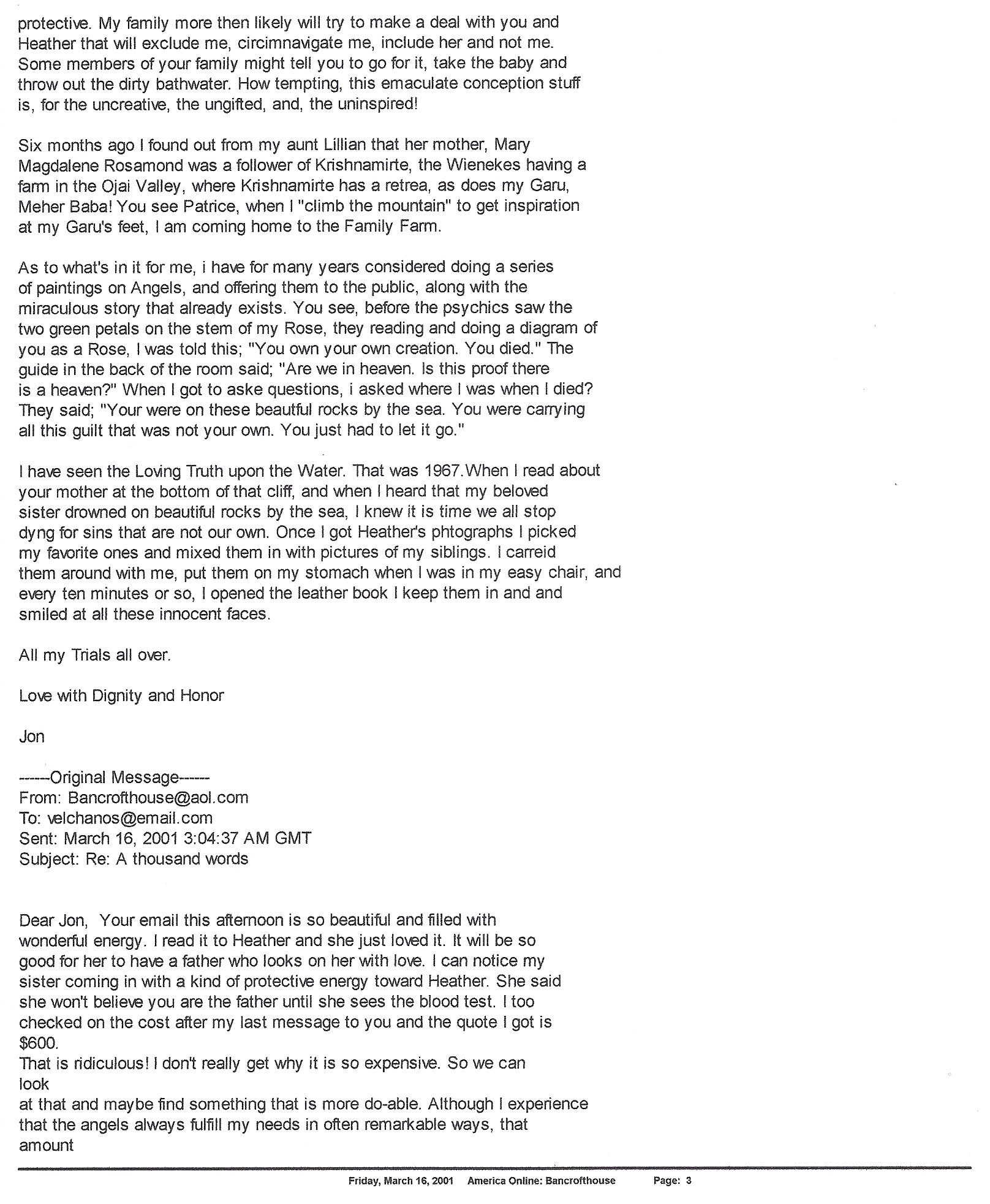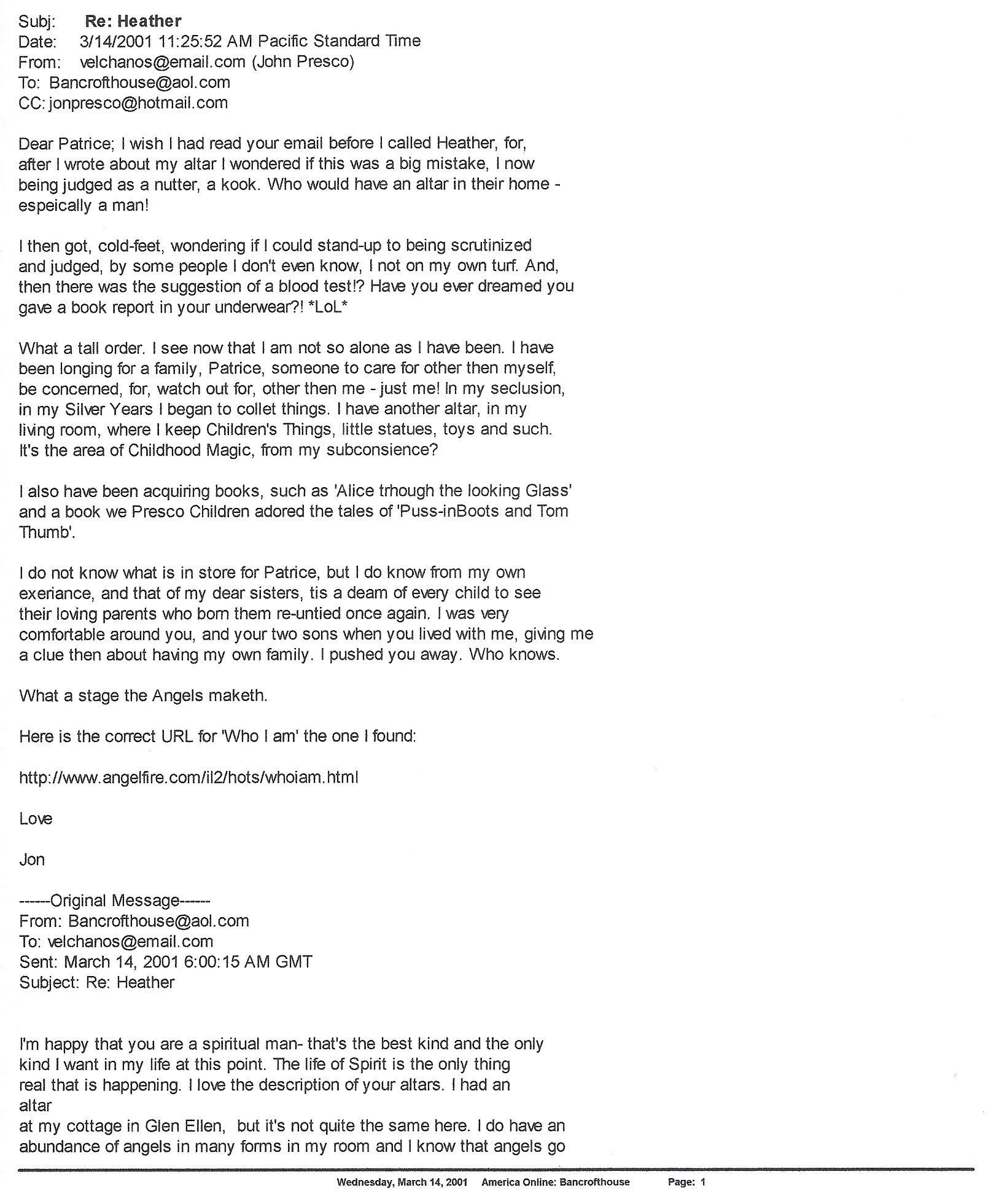 Three months ago my niece sent me a message on Facebook. She said she needed to talk to family. She asked me to have Drew Benton call her. I felt for her isolation, her exclusion, for this is what Vick and Mark Presco did to me when I asked too many good questions. When Vicki called me and said;