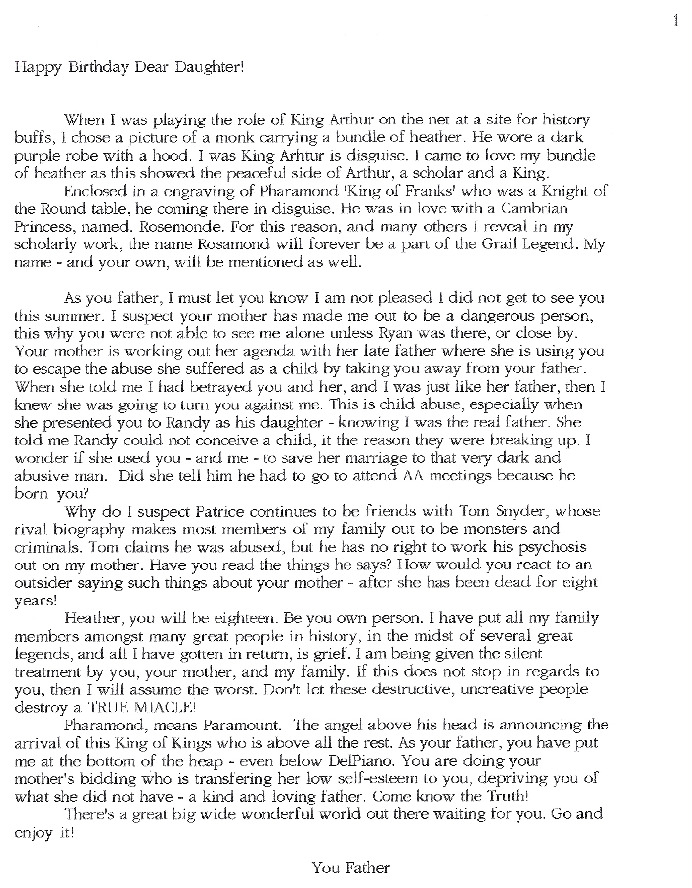 “We are the only ones left.” I fell for her ruse once again. She said Mark and her had a terrible fight and he disappeared. No one can find him. This is BULLSHIT, for he is the horned beast at the center of the labyrinth, he the lover of money, along with our young sister – and my daughter!