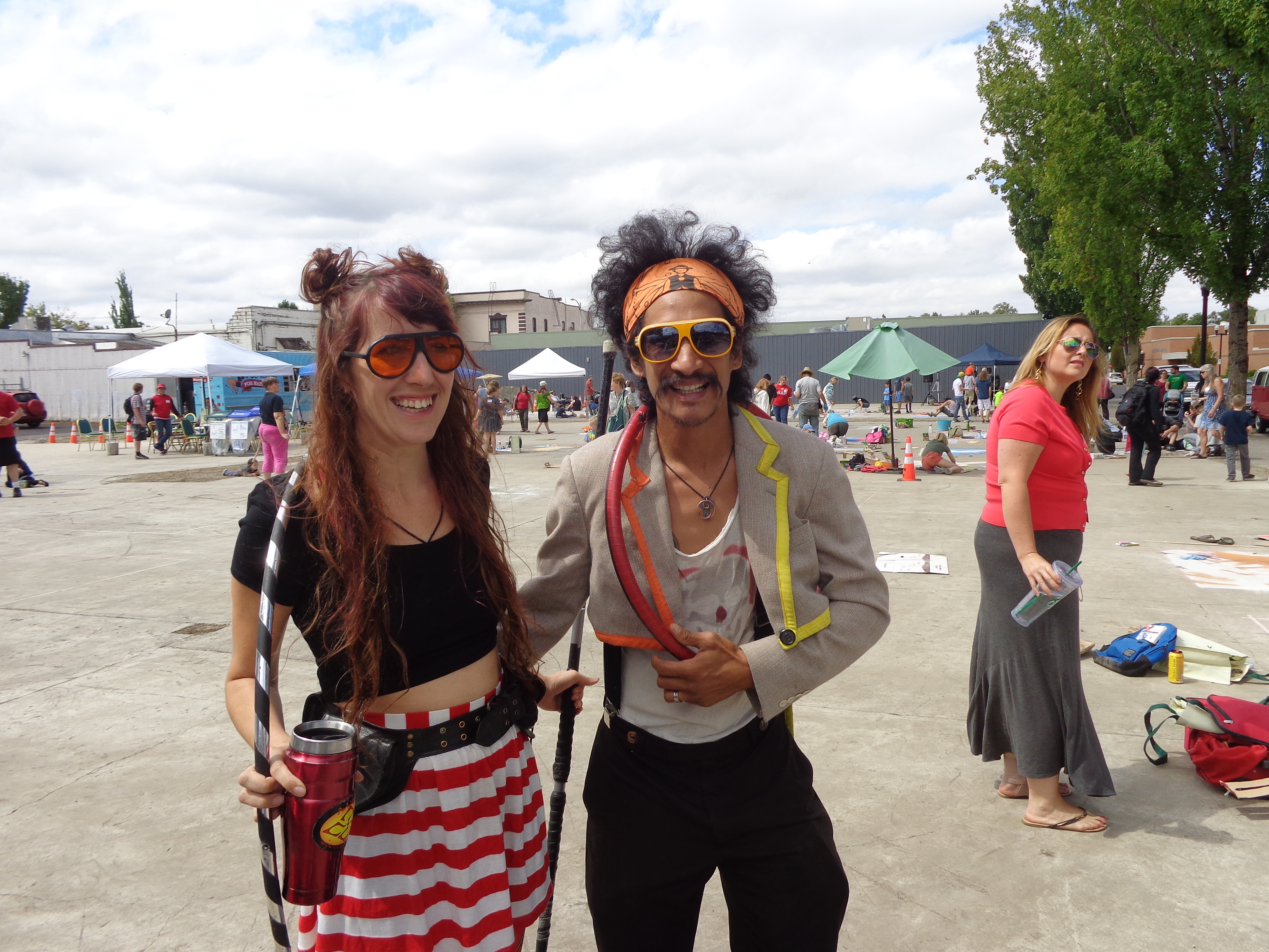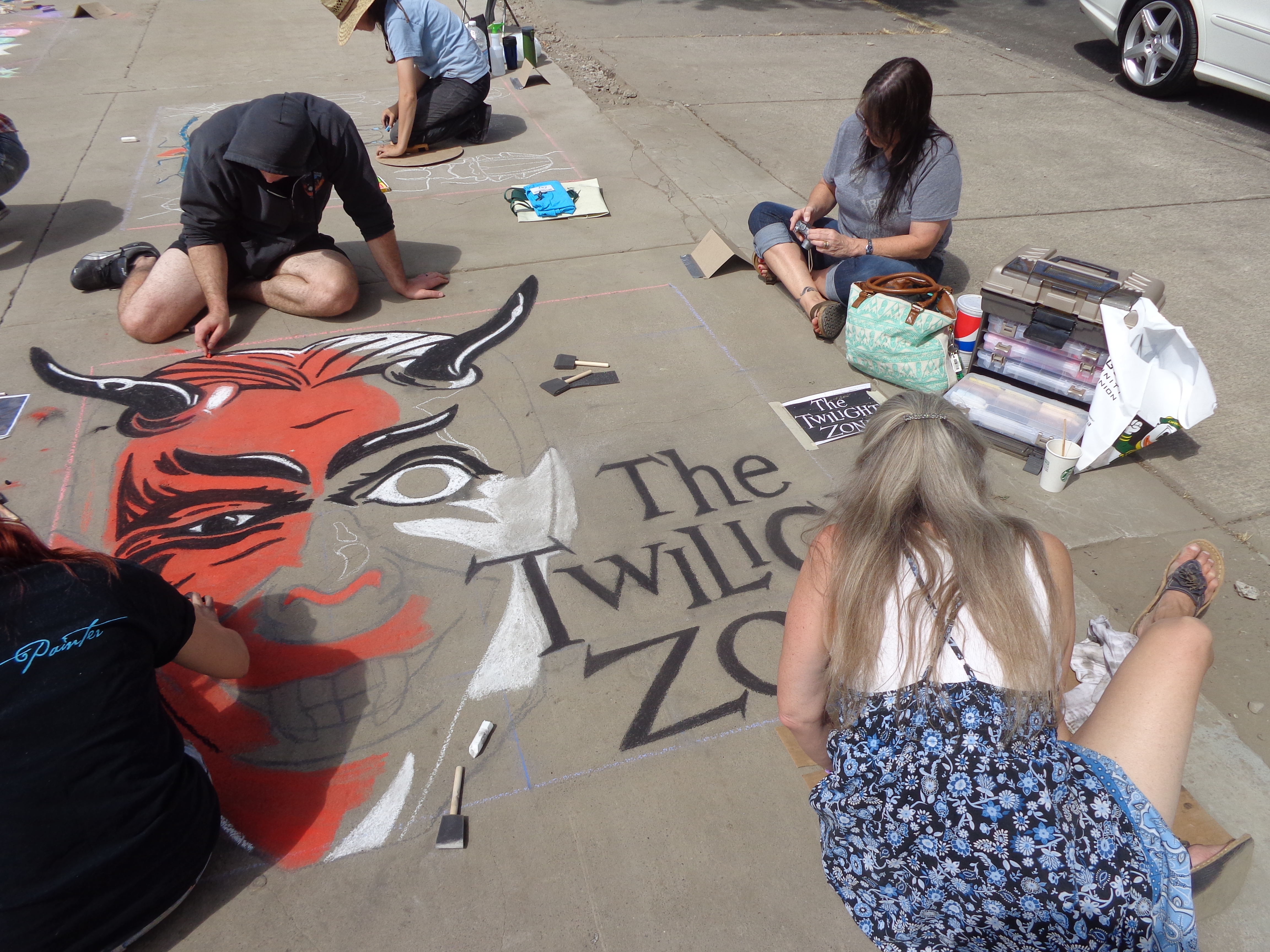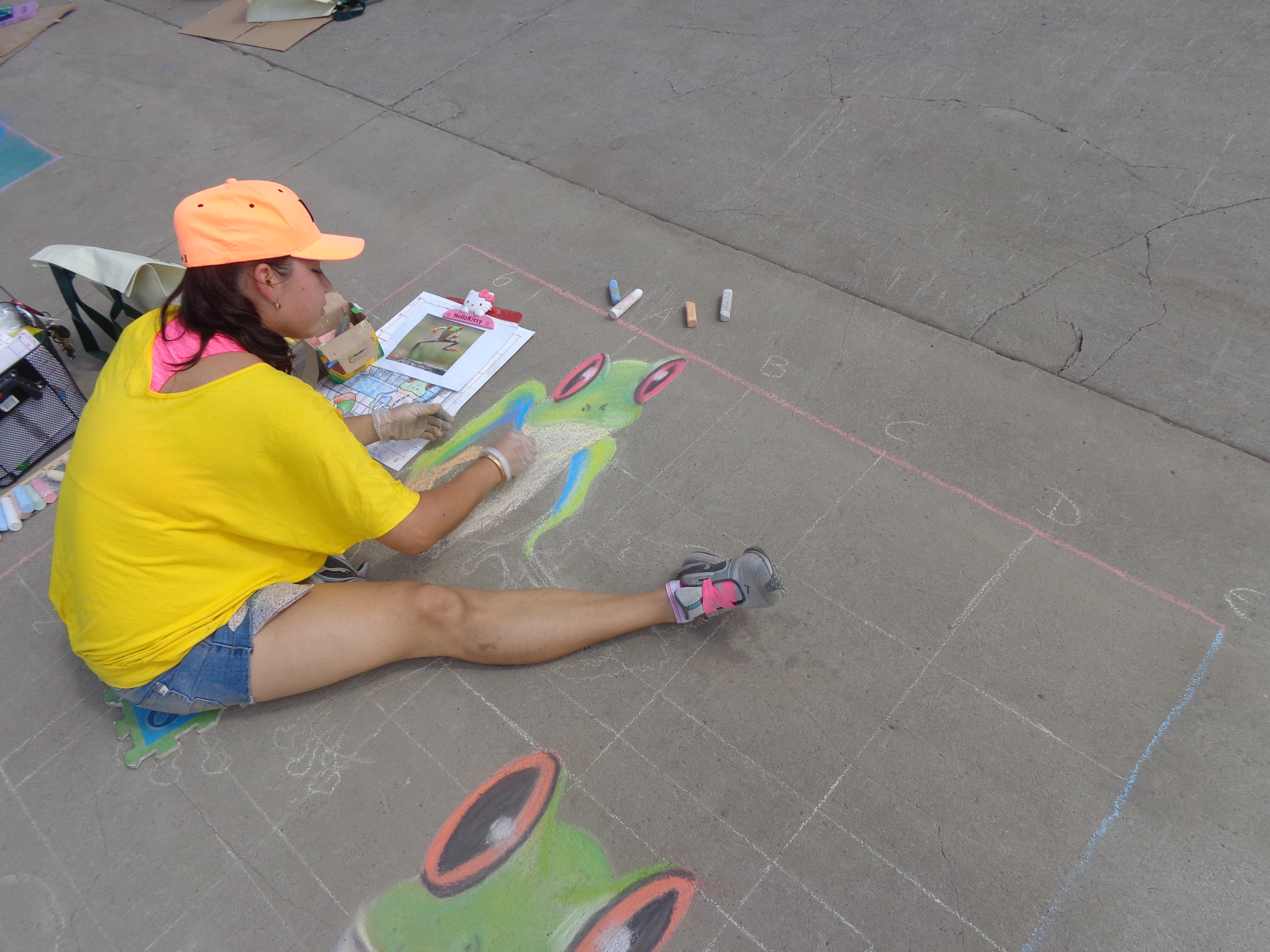 At the suggestion of Betty at ‘Hearts For Hospice’ I attended the second annual Springfield Chalk Festival. Because of the conversation I had with Betty at the Friday Art Walk, where I got opinions about the Simpson mural, I have renewed my vision that the city where I dwell is going to have a better art scene than Eugene. On the way to the chalk fest I still had doubts about whether there was enough Old Bohemian Funk, then I spotted a father and his daughter creating works of art together – in the street! I was blown away!