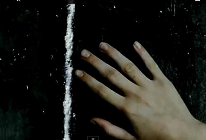 What the chalk line is, is CONJURING. It may represent the coming together of the artistic ideas of two Bohemian Artists, they meeting on the edge of the two-dimensional cage that most framed artwork is, or isn’t in some rare cases. This is one of those rarities. With the suggestion of color, I experienced an optical illusion where I saw this plot covered in faint pastel colors, yellow, blue, green. My mind was filling in the blank area. It took some effort to stop my hallucinating and see what was really there. What I would eventually see, is that this work transcends, teleporting, telephoning, telescoping, and, teledesign, a word I just made up. It could be delayed-telepathy where the message has been sent, after the means to receive the message has been launched.